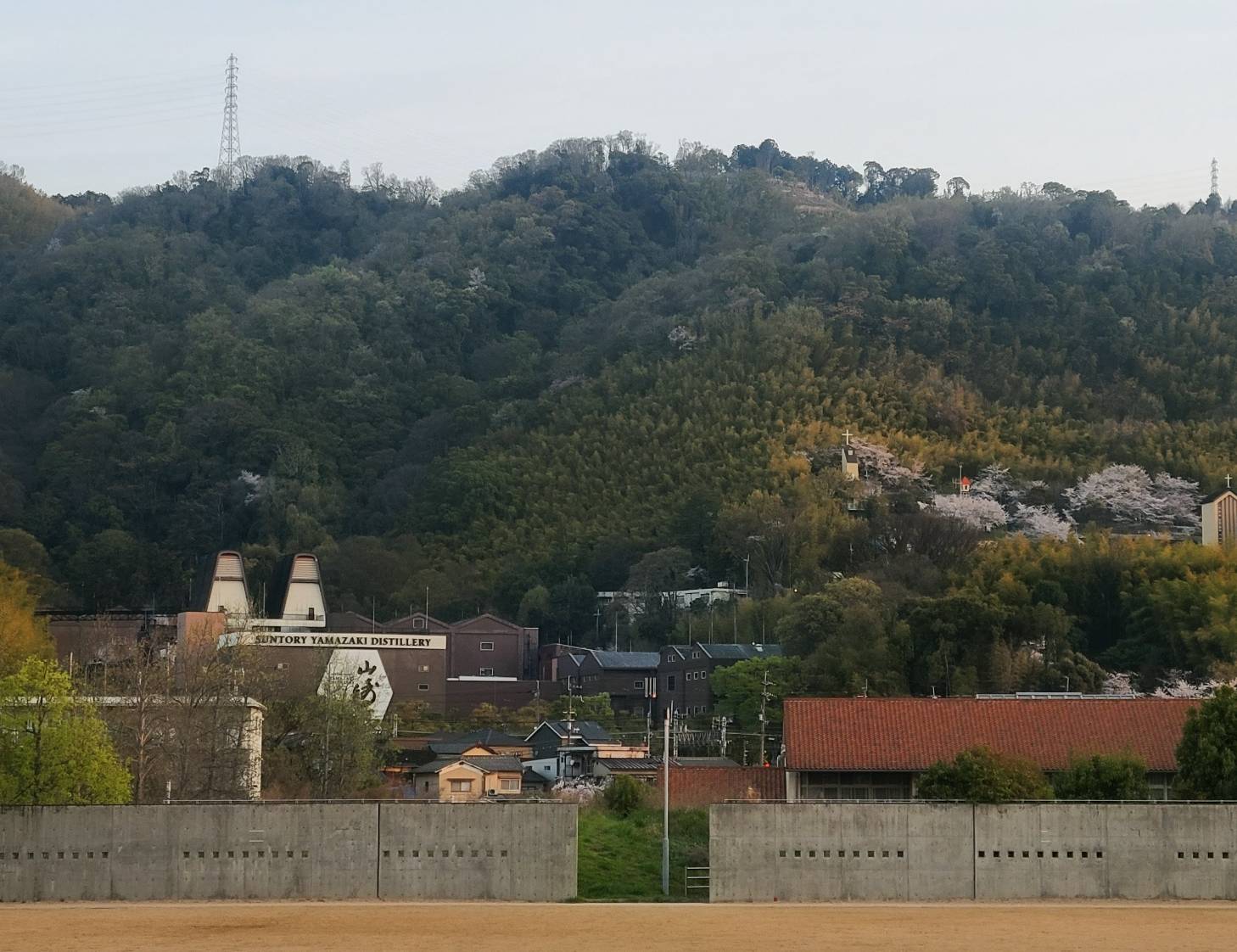 ここから見るウイスキー蒸留所と山間部サクラも期間限定なんでソラと毎朝楽しんでおります✌️