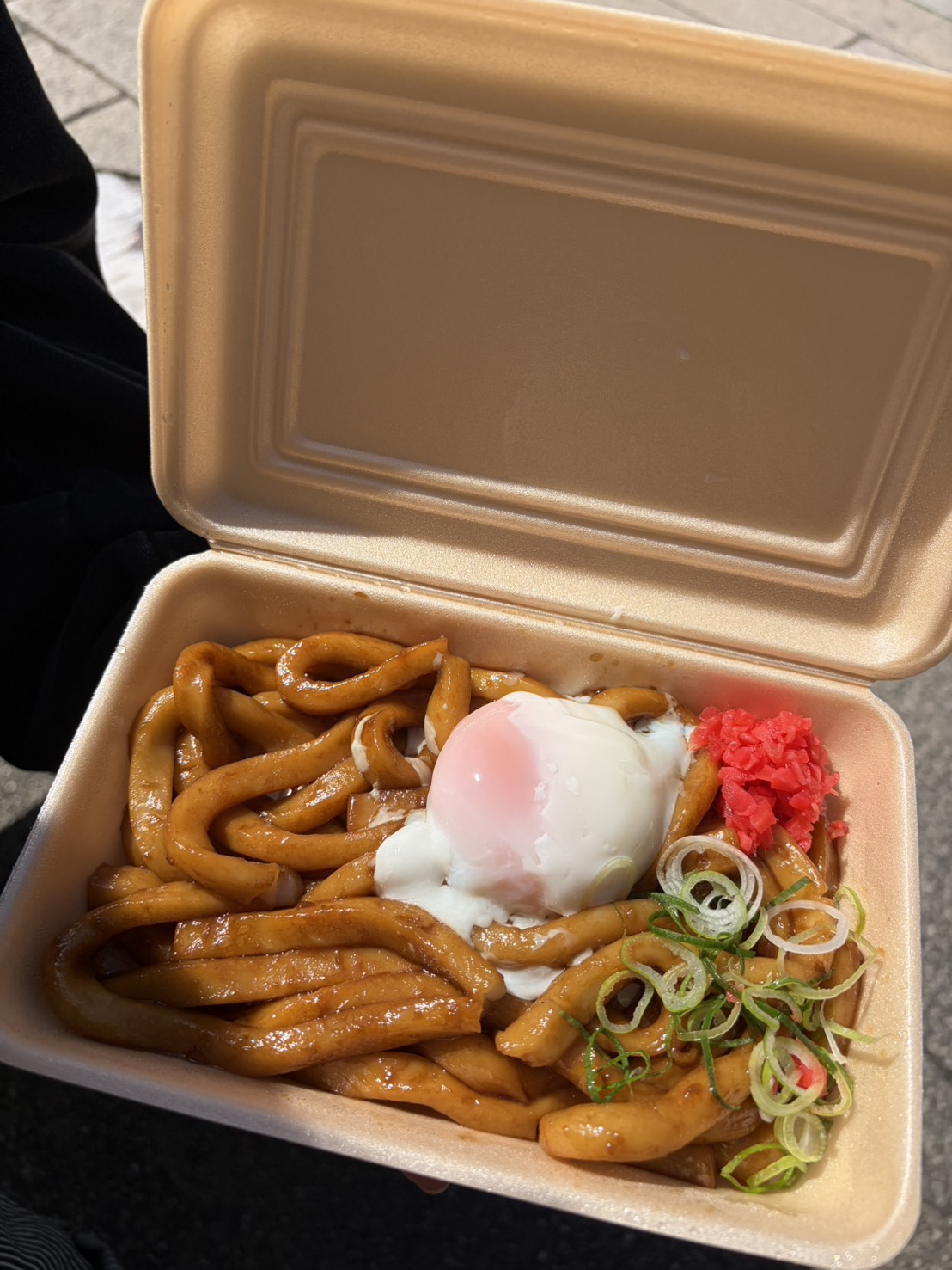 甘め醤油味付けの焼きうどん! ソース味ちゃいますよ!
